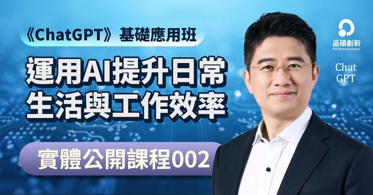 《ChatGPT》基礎應用班(第3期):運用AI提升日常生活與工作效率(即將上線)