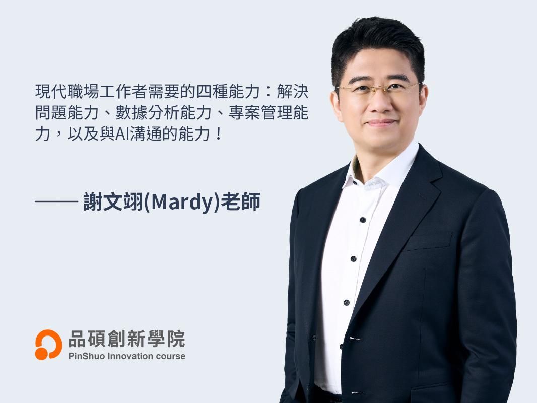 目前,謝文翊於《品碩創新管理顧問》擔任特聘講師,主講「AI專案管理實務」、「ChatGPT基礎應用」與「Power BI數據分析」等系列課程,並創辦《Mardy老師的職場人講堂》,致力於將複雜的AI概念,轉化為人人可上手的實務工具。